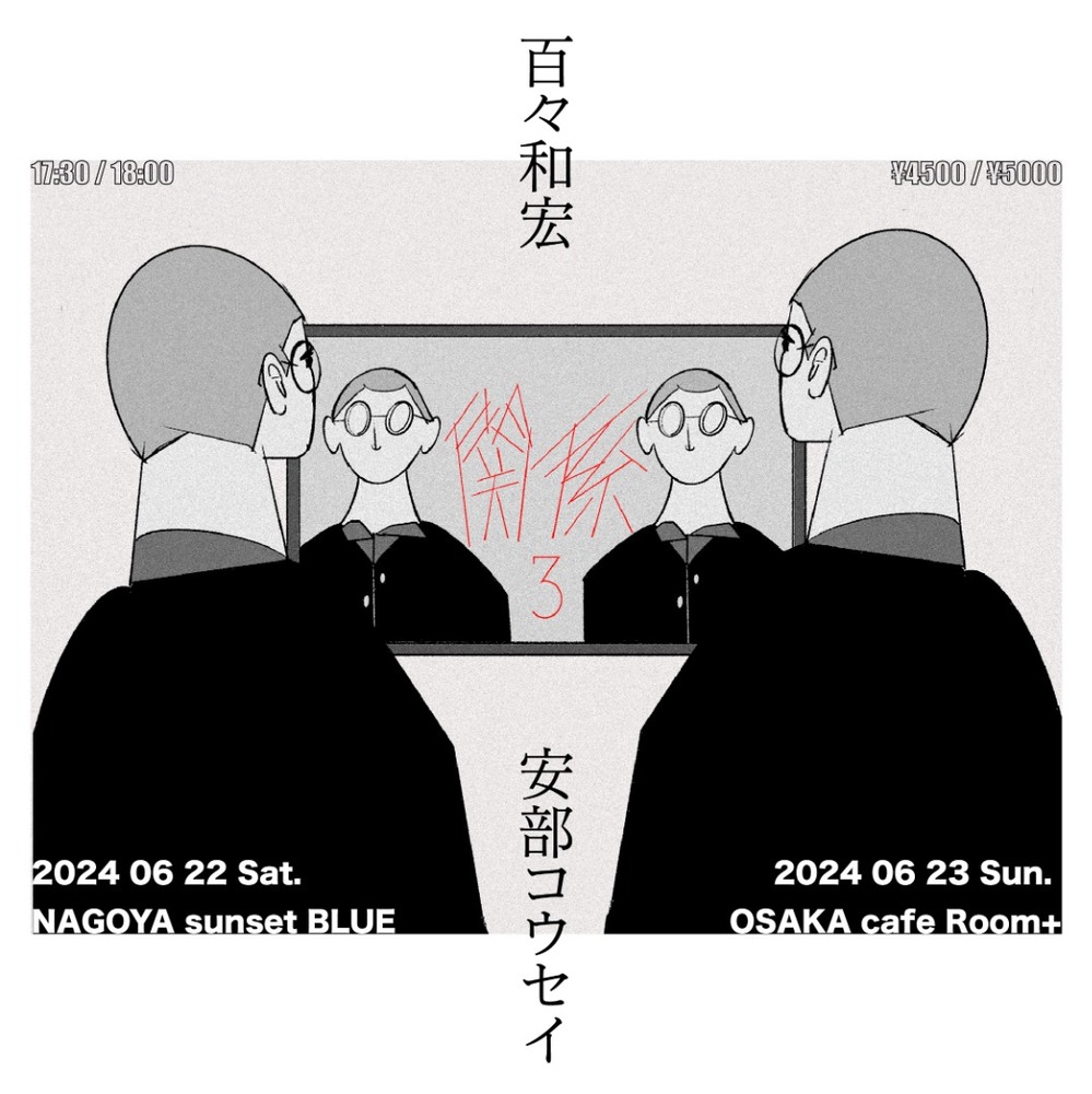 安部コウセイ✖︎ 百々和宏 ツーマンライブ @ 大阪 cafe Room+ LIVE SCHEDULE 2024/06/23(日) 18:00 - 大阪 cafe Room+ 『関係3』 出演 百々和宏 安部コウセイ 2024年6月23日(日) 大阪 cafe Room+ 開場 17:30 開演 18:00 チケット 前売 ¥4500 当日 ¥5000 ※ 同公演は2人が同時にステージに立ち、交互に1曲づつ演奏します。トークを交えながらのゆったりとした時間をお楽しみください。 ⚪︎チケット受付は4/20(土)20:00より チケット受付は4/20(土)20:00より URLをコピーする 報告する
